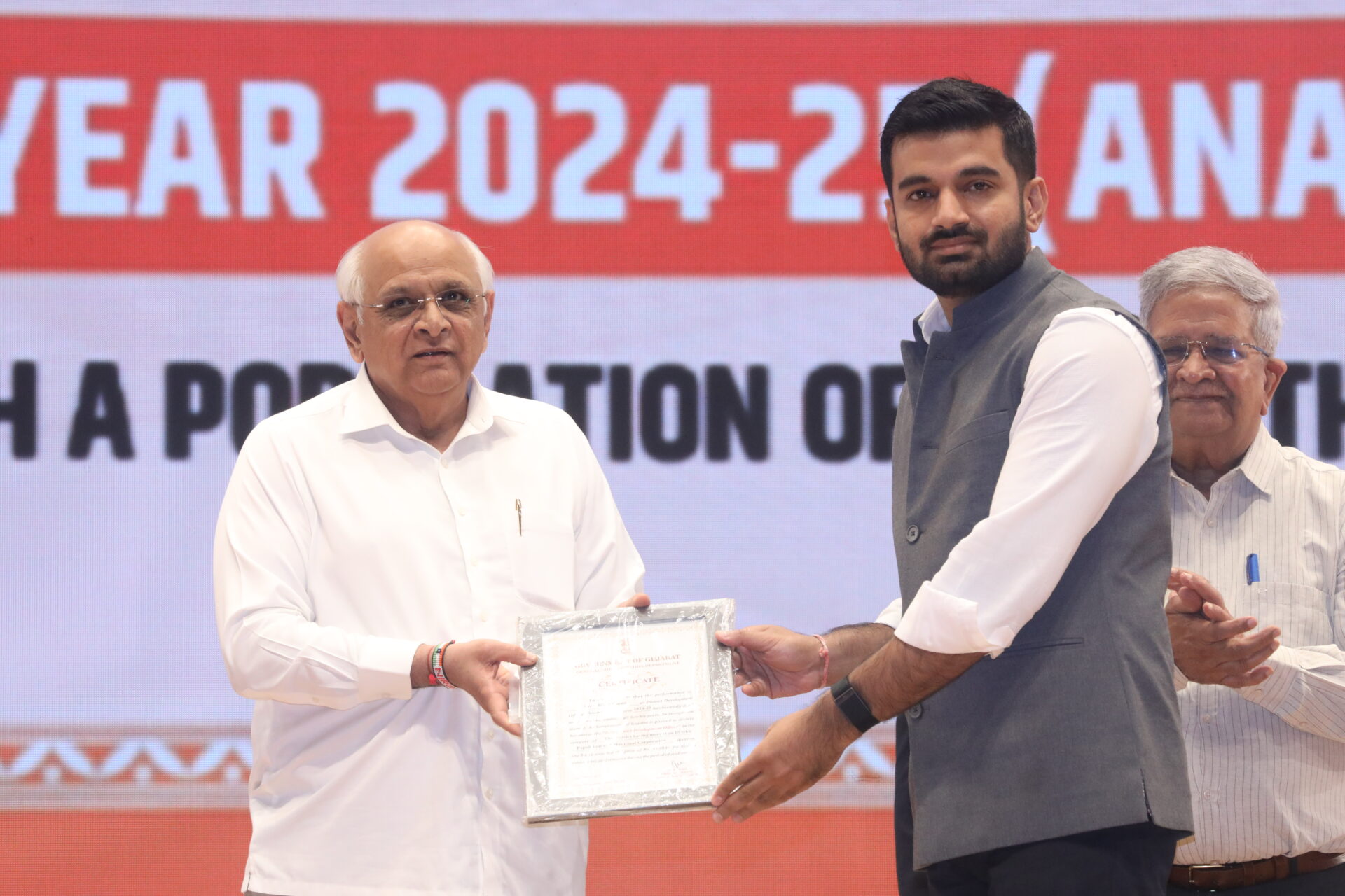 મુખ્યમંત્રીશ્રીએ નાયબ મુખ્ય મંત્રી શ્રી હર્ષ સંઘવી ની ઉપસ્થિતિ માં આ પુરસ્કાર આપ્યા હતા.