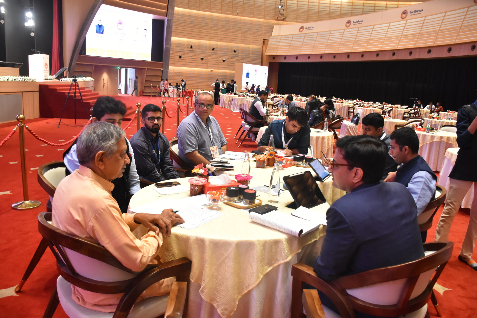 સામૂહિક ચિંતનથી સામૂહિક વિકાસના ધ્યેય સાથે યોજાઇ રહેલી આ ચિંતન શિબિરના બીજા દિવસના પ્રથમ સત્રના ગૃપ ડીસ્કશન્સમાં મુખ્યમંત્રીશ્રી અને નાયબ મુખ્યમંત્રીશ્રી સહિત મંત્રીશ્રીઓ અને મુખ્ય સચિવશ્રી એમ. કે. દાસ સક્રિયપણે સહભાગી થયા હતા.