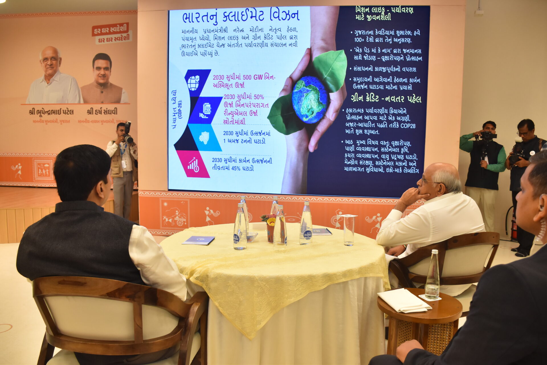 આ ચર્ચાસત્રમાં ઊર્જા મંત્રીશ્રી ઋષિકેશભાઇ પટેલ, વન પર્યાવરણ મંત્રીશ્રી અર્જુનભાઇ મોઢવાડિયા, જળસંપત્તિ અને પાણી પુરવઠા રાજ્યમંત્રીશ્રી ઇશ્વરસિંહ પટેલ, રાજ્યમંત્રીશ્રીઓ સર્વશ્રી ડો.મનીષા વકીલ, કૌશિકભાઇ વેકરીયા અને પ્રવિણભાઇ માળી તથા આઇ.એ.એસ. અધિકારીઓ સહભાગી થયા હતા.