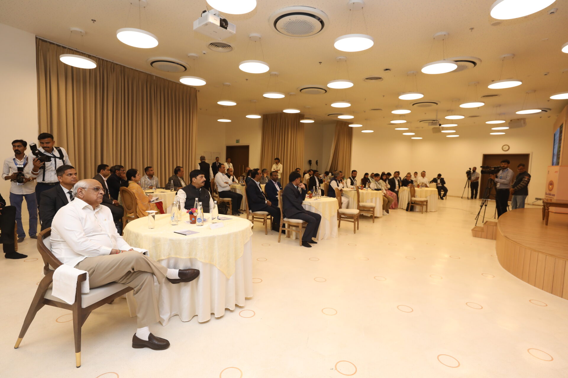 આ ચર્ચાસત્રમાં નાણાં અને શહેરીવિકાસમંત્રીશ્રી કનુભાઇ દેસાઇ, રમગમત રાજયમંત્રીશ્રી ર્ડો. જયરામભાઇ ગામીત, નાણાં રાજયમંત્રીશ્રી કમલેશ પટેલ, મહેસૂલ અને આપતિ વ્યવસ્થાપન રાજયમંત્રીશ્રી સંજયસિંહ મહિડા, આદિજાતિ વિકાસ રાજયમંત્રીશ્રી પી. સી. બરંડા તથા શિક્ષણ રાજયમંત્રી શ્રીમતી રીવાબા જાડેજા અને મુખ્યમંત્રીશ્રીના મુખ્ય સલાહકારશ્રી ર્ડો. હસમુખ અઢીયા જોડાયા હતા.