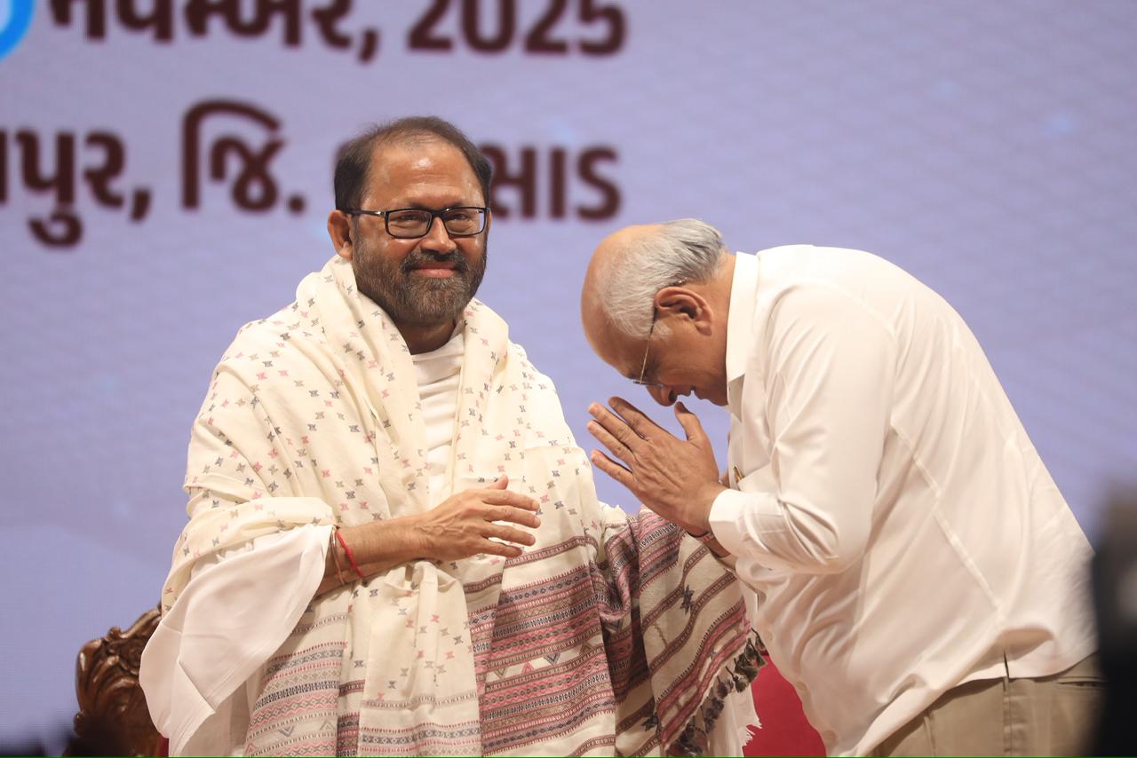 શ્રી આત્માર્પિત નેમીજીએ સ્વાગત ઉદ્દબોધન કરી સૌને આવકાર્યા હતા. મુખ્યમંત્રીશ્રી એ ગુરુદેવ રાકેશજીને શાલ ઓઢાડી મેમેન્ટો આપી સન્માન કર્યું હતું.