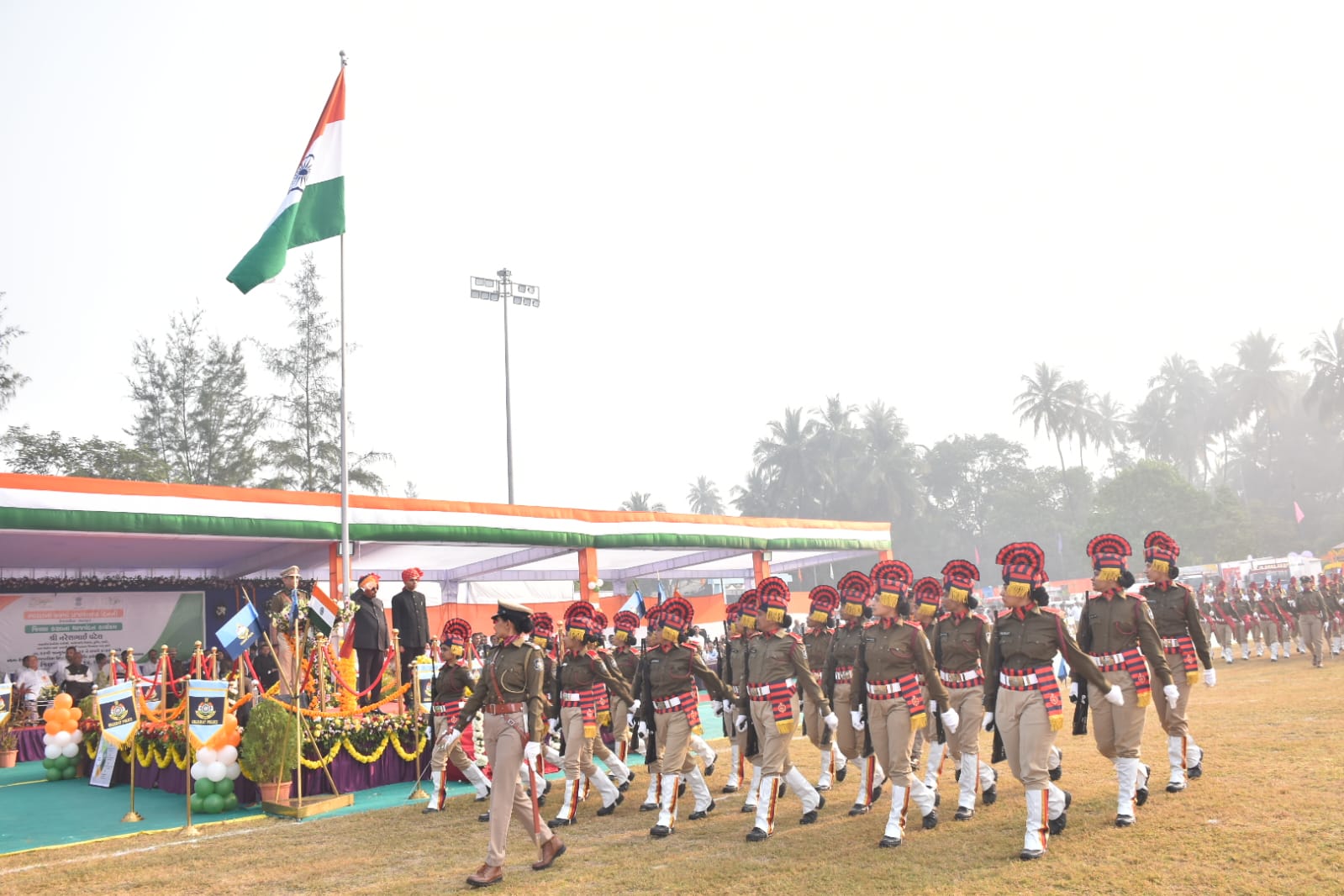 મંત્રીશ્રી દ્વારા પોલીસ પરેડનું નિરીક્ષણ કરાયું હતું. વલસાડ જિલ્લા પોલીસના પુરુષ પ્લાટુન, મહિલા પ્લાટુન, હોમગાર્ડ મહિલા અને પુરુષ સહિત ૭ પ્લાટૂન દ્વારા માર્ચ પાસ્ટ કરવામાં આવી હતી. જેમાં કપરાડા પોલીસ સ્ટેશન પ્લાટુન પ્રથમ ક્રમે, વાપી જીઆઈડીસી પોલીસ સ્ટેશન પ્લાટુન બીજા ક્રમે અને ડુંગરા પોલીસ સ્ટેશન પ્લાટુન ત્રીજા ક્રમે વિજેતા થઈ હતી. સરકારની પ્રજાલક્ષી કલ્યાણકારી યોજનાની માહિતી લોકો સુધી પહોંચે તે માટે ૯ આકર્ષક ટેબલો વિવિધ વિભાગો દ્વારા રજૂ કરાયા હતા. જેમાં આઈસીડીએસ વિભાગનો ટેબલો પ્રથમ ક્રમે, ખેતીવાડી શાખાનો ટેબલો બીજા ક્રમે અને આરોગ્ય ખાતાનો ટેબલો ત્રીજા ક્રમે વિજેતા થયો હતો.