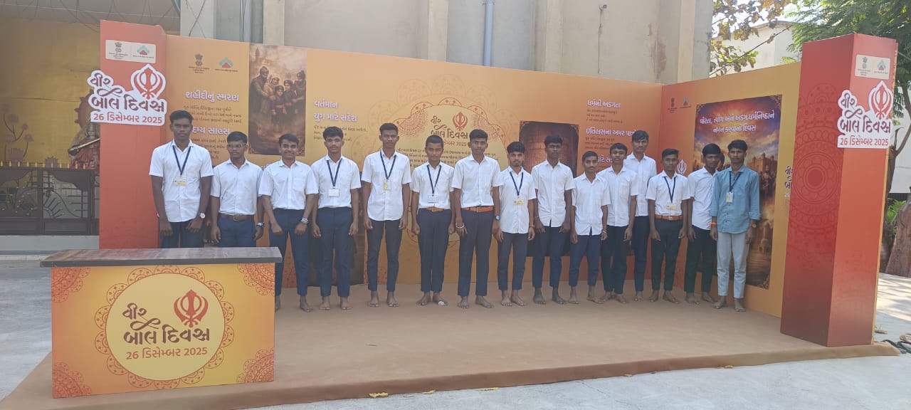 ગુજરાત સરકારના રમત-ગમત યુવા અને સાંસ્કૃતિક પ્રવૃત્તિઓ વિભાગ ગાંધીનગર હેઠળની કમિશનરશ્રી યુવક સેવા અને સાંસ્કૃતિક પ્રવૃતિઓ ગાંધીનગર પ્રેરીત વલસાડ જિલ્લા યુવા અને સાંસ્કૃતિક પ્રવૃતિઓની કચેરી દ્વારા આયોજિત “વીર બાલ દિવસ” ૨૦૨૫-૨૬ અંતર્ગત વીરતા, નૈતિક મૂલ્યો અને દેશભકિત આધારિત વ્યાખ્યાન તેમજ સાંસ્કૃતિક કાર્યક્રમની રજુઆત ધરમપુરની આદર્શ નિવાસી શાળા (કુમાર) બામટીના સહયોગથી કરવામાં આવી હતી.