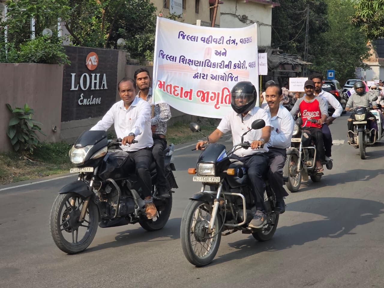 આ સમગ્ર કાર્યક્રમ જિલ્લા SVEEP નોડલ અધિકારી તથા જિલ્લા શિક્ષણાધિકારી ડો. રાજેશ્રી એ. એલ. ટંડેલના પ્રેરક માર્ગદર્શન હેઠળ સુવ્યવસ્થિત રીતે યોજાયો હતો. તેમની દૃઢ આગેવાની હેઠળ આ અભિયાન માત્ર જાગૃતિ પૂરતું નહીં પરંતુ જનભાગીદારીનો જીવંત ઉત્સવ બની રહ્યો હતો. બાઈક રેલીનો પ્રારંભ દેસાઈ એન.ડી.એન. હાઈસ્કૂલ, વાપીથી કરવામાં આવ્યો હતો. આ રેલી શહેરના છીરી, છરવાડા, રેલવે સ્ટેશન અને ગુંજન જેવા વિસ્તારોમાં સંગઠિત રીતે ફરી, જ્યાં “મારો મત – મારો અધિકાર”ના નારા સાથે સમગ્ર વાતાવરણ લોકશાહી રંગે રંગાઈ ગયું હતું. આ કાર્યક્રમની વિશેષતા તરીકે વિદ્યાર્થીઓ દ્વારા અંબે માતા વિસ્તાર, ગુંજન વિસ્તાર અને વાપી રેલવે સ્ટેશન ખાતે પ્રસ્તુત કરાયેલા જીવંત અને અસરકારક સ્ટ્રીટ પ્લેએ નાગરિકોના મનને સ્પર્શી લીધા હતા. આ પ્રસ્તુતિઓએ મતદાનના મહત્વને સરળ અને હૃદયસ્પર્શી રીતે રજૂ કરી લોકોમાં જાગૃતિનો નવો ઉમંગ જગાવ્યો હતો.
